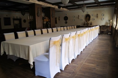 Išsinuomavus bet kuriuos - trikotažinės, atlaso arba poliesterio medžiagos užvalkalus, oranžinių, violetinių, baltų, žalių arba aukso spalvos kaspinų nuoma nieko nekainuos!