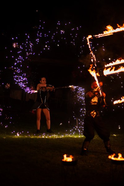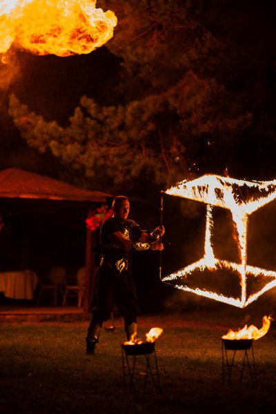 Tai ne tik šokis su ugnimi. Tai elegantiška ir aistringa dviejų ar trijų atlikėjų choreografija, suderinta su romantiška muzika ir specialiaisiais pirotechnikos efektais, kurie vidurnakčio dangų paverčia magiška scena.