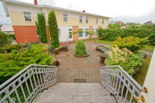 Sodybos aprašymas: privatus namas 750 m², 7 miegamieji, pobuvių ir šokių salė - viso 75 m² (salės aprūpintos audio technika bei šviesos efektais) , WC, penki vonios kambariai, 18 arų aptvertas sklypas su sodu ir vidiniu kiemu, pirties-pramogų kompleksas, baseinas.