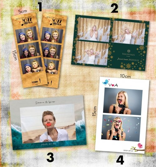 Kviečiame savo šventei nuomotis foto būdelę. Smagi pramoga svečiams, kol laukia jaunųjų sugrįžtant iš savo fotosesijos arba viso vakaro metu. Per 15 sek. atspausdinamos dvi vienodos kopijos, vieną jų svečiai gali įklijuoti į svečių knygą. Nuotraukos rėmelio dizainas paruošiamas individualiai priderinant prie bendros šventės stilistikos.