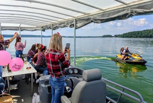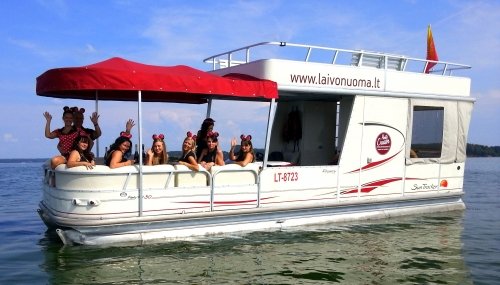 Mergavakario ar bernvakario proga siūlome plaukti į Meilės įlanką, o pakeliui gali priplaukti prie laivo galingas vandens motociklas ir pagrobti būsimą jaunąją ar jaunikį bei pasiūlyti jam/jai išbandyti tempiamą vandens ratą ar net vandens slides! Adrenalino tikrai nepritrūks. Merginoms jei pageidaus galime pažadėti mažiau ekstrymo ir nesušlapinti pilnai. Be to galime padaryti siurprizą ir būsimą jaunąją paimti iš namų motociklu bei pristatyti į uostą, kur laive jos jau lauktų draugės.
