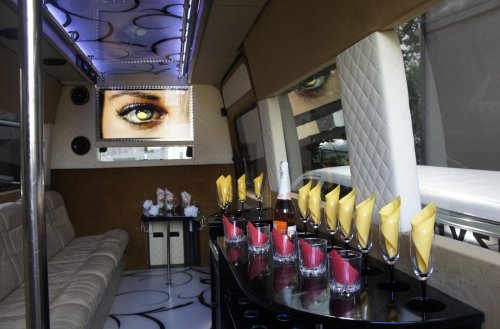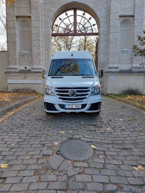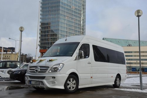 Baltos spalvos VIP-BUS Mercedes- Sprinter Iki 13 vietų, disco grindys ir lubos, rūko mašina, lazeriai. Vestuvėms, Mergvakariams, Bernvakariams, Gimtadieniams, Krikštynoms, Vakarėliams, Pasitikimas iš oro uostų ir bet kurioms kitoms šventėms.