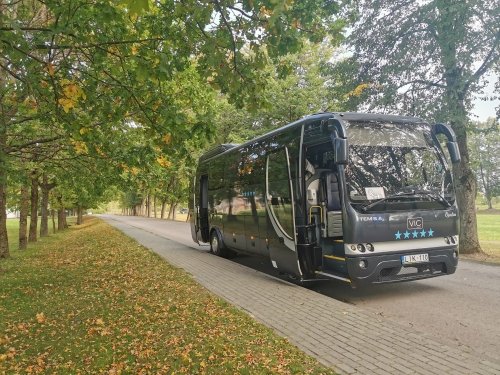 Prabangus 26 vietų Mercedes- Sprinter mikroautobusas. Koplektacija: kondicionierius, video- audio, CD, MP3, DVD aparatūra, gido įranga, bordinės spalvos salonas.
