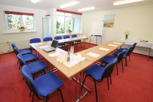 Konferencijų salė. Seminarams bei kitiems verslo renginiams įrengta 25 vietų konferncijų salė. Konferencijų dalyviams siūlome kavos pertraukėles, norintieji gali užsisakyti verslo pietus, furšetą ar banketą mūsų jaukiame restorane. Mūsų komanda pasiruošusi pasirūpinti ir Jūsų laisvalaikio organizavimu.
