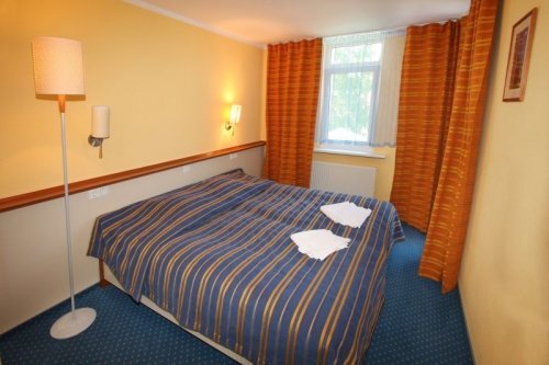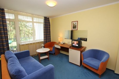 Standartinis dvivietis kambarys: miegamasis (dvigulė lova arba atskiros lovos), papildomas kambarys (svetainė) su minkštaisiais baldais ir darbo stalu, vonios kambarys, balkonas.