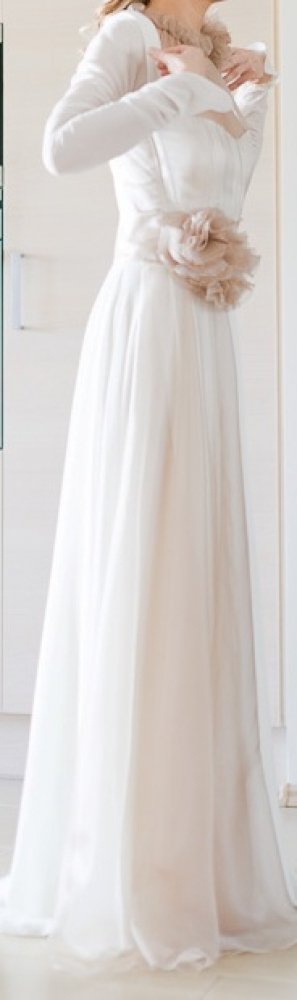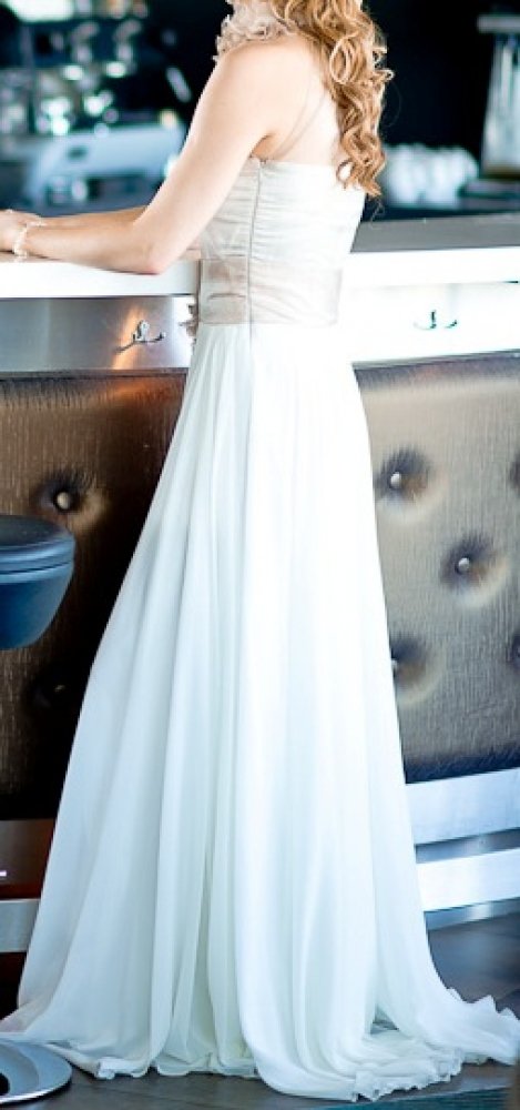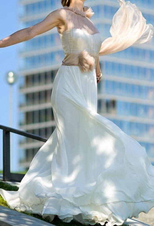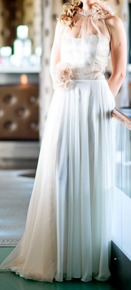 Parduodu šią nuostabią, siūtą pagal aukštosios mados modelį suknelę, suknutė ypatingai lengva, romantiška, visiškai kitokia negu įprastinės salonuose. Daug puošnumo suteikia permatomos kreminės spalvos organzos gėlės prie kakliuko ir ties juosmeniu, paliktos juostos plaikstosi iki žemės. Prie suknutės yra pritaikytas ir nuostabaus modeliuko bolero patrauktomis ilgomis rankovėmis. Išskirtinis pasiūlymas išskirtinei nuotakai! Su rimta pirkėja kaina rimtai derinama :-)