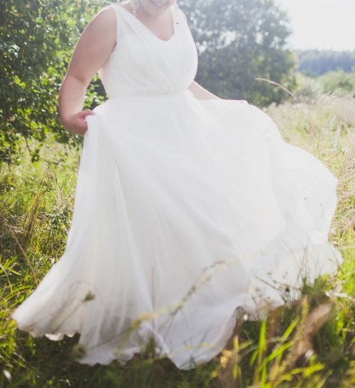 Dizainerių Erikos Vizgirdaitės ir Rasos Jarmolavičiūtės kurta vestuvinė suknelė, vilkėta 1 kartą. Suknelė tinka 1,70 m merginai, 44 - 46 dydis (XL). Suknelė labai lengva, plazdanti. Nuometas pridedamas. Dėl kainos galima tartis.