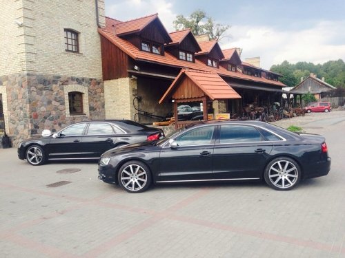 Kvapą gniaužianti garso kokybė, atskira kondicionavimo komforto zona, masažuojančios šildomos ir ventiliuojamos sėdynės, visų ratų (quattro®) varančių galingų 4.2 ir 4.0 litrų variklių garsai, bei linksmi, mandagūs, gerbiantys Jūs ir Jūsų šventę vairuotojai.