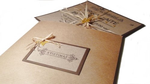 Rankų darbo, išskirtiniai kvietimai, stalo kortelės, dovanėlės svečiams.