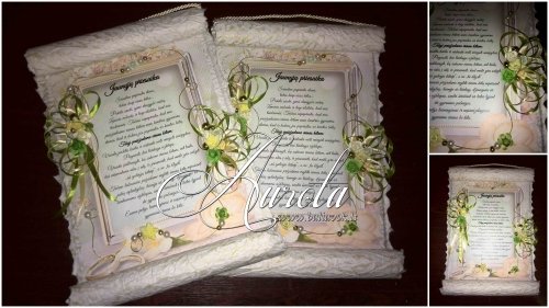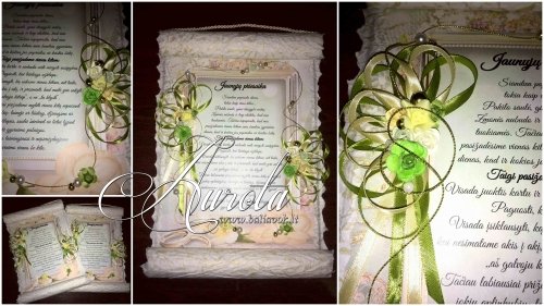 Gaminame vestuvinę, krikštynų, bei kitą šventinę atributiką; kvietimai, stalo kortelės, dovanėlės svečiams, svečių palinkėjimų knygos, taurės jauniesiems, naktiniai pirmai nakčiai, svočios, bei piršlio raštai, sveikinimai, rankų darbo atvirukai. Darome saldainių medžius, maketuojame šventinius laikraštėlius, saldainių popierėlius... Puošiame sales, automobilius, stalus. Nuomojame indus saldžiam stalui.