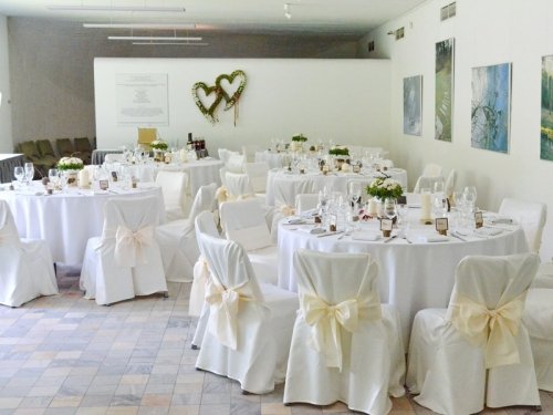 * įvairių spalvų sijonus stalams.
